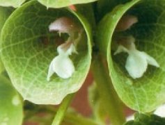 袋鼠花株高20~30厘米。叶对生,革质具光泽。花单生于叶腋,中部膨大,...